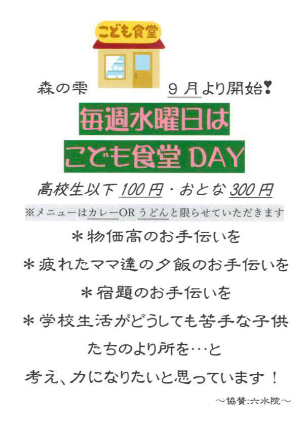 この9月より遂に悲願の『子ども食堂』を実現する運びとなりました。